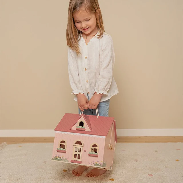 Het houten draagbare poppenhuis van Little Dutch is een schattig en gezellig roze huisje met mooie details.
