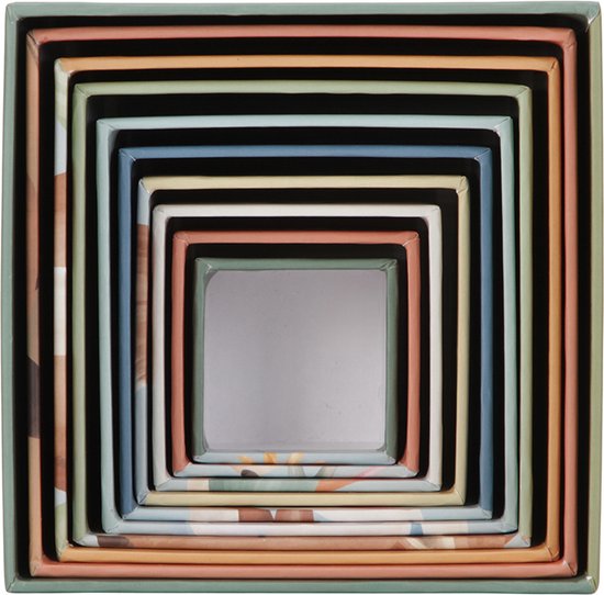 Om ze gemakkelijk op te bergen, passen de kleine blokjes in de grotere.