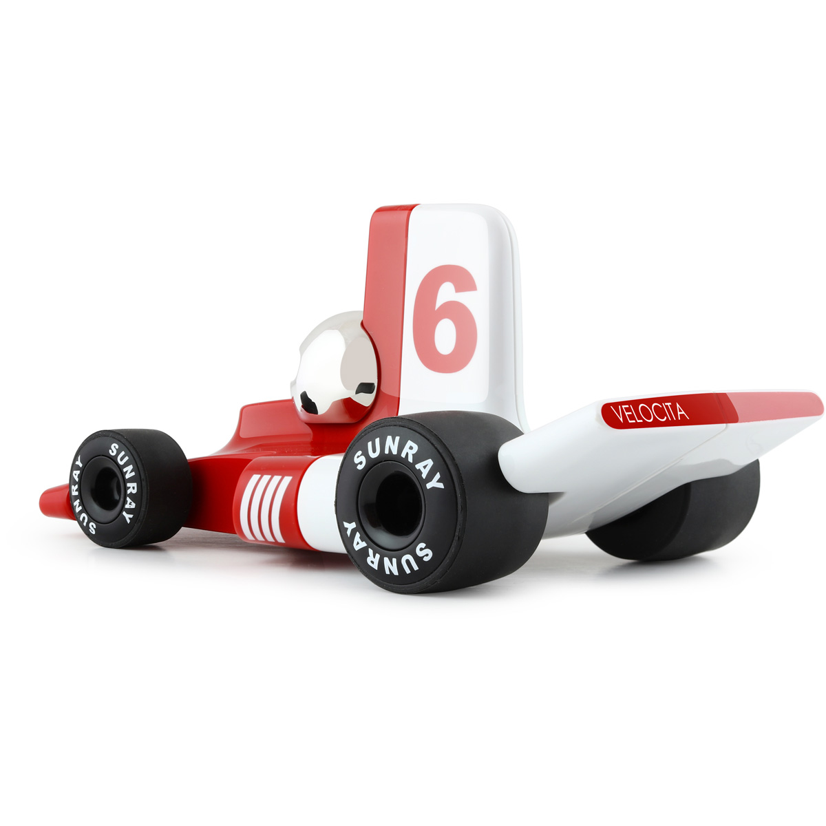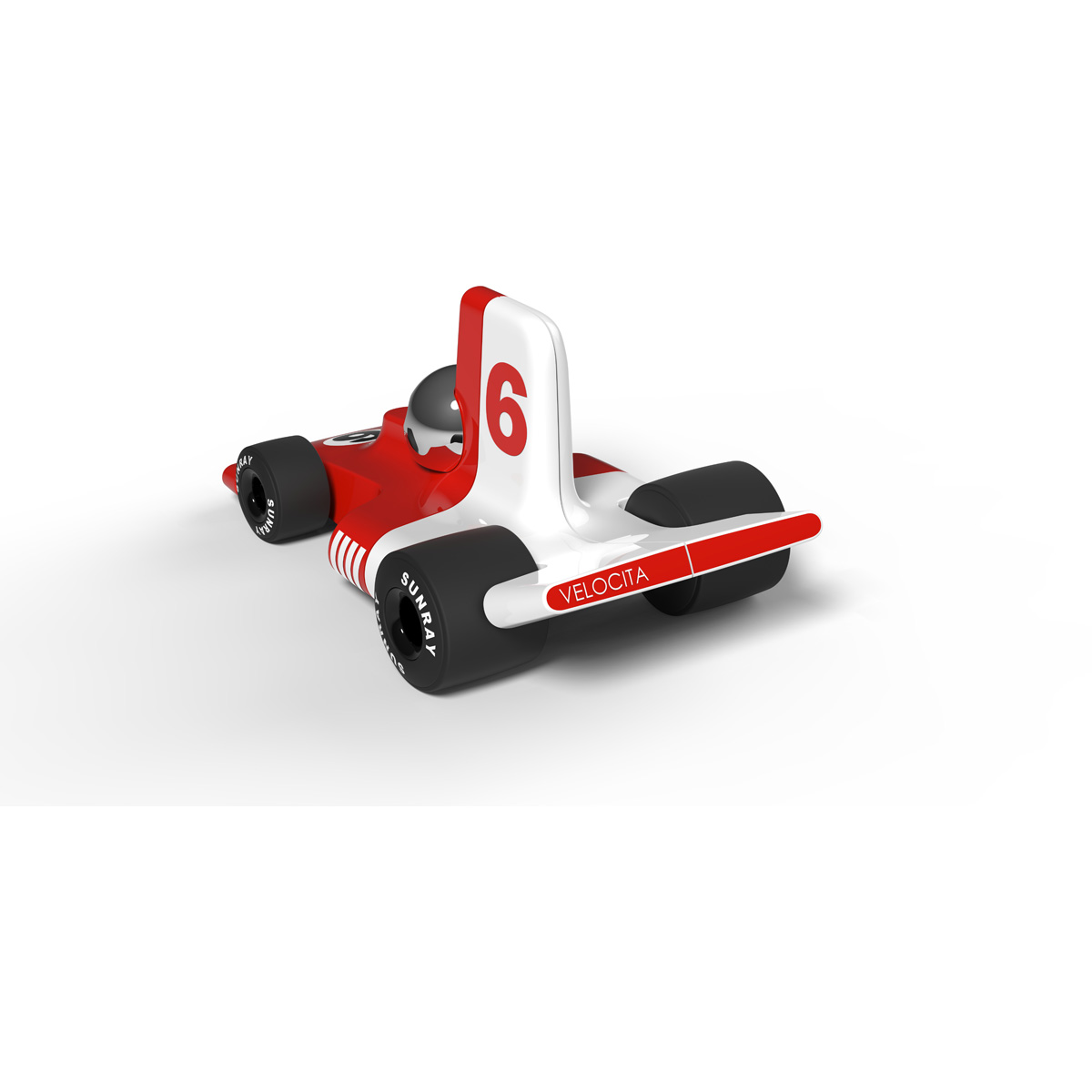 De Playforever raceauto Verve Velocita Jean brengt het gevoel van de Formule 1 uit de jaren 70 tot leven! Met zijn gestroomlijnde vormen, opvallende rode kleur en glanzende afwerking is deze speelgoedauto een echte blikvanger voor jong en oud.