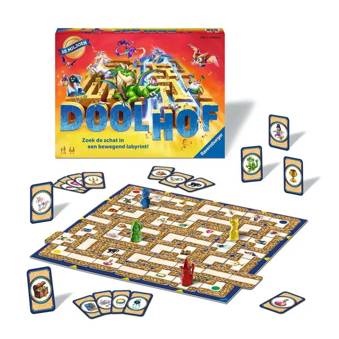 Kun jij je weg vinden door dit spannende, betoverde doolhof? Schuif de gangenkaarten, verzamel de meeste schatten en win!